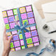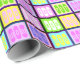 Create a one-of-a-kind gift with this personalised wrapping paper! It features up to nine customisable typography fields, allowing you to include three-letter words, names, or numbers of your choice. The current design highlights playful words such as "six," "toy," "pet," "fun," "kid," "God," "joy," "win," and "wow." With its colourful and vibrant layout, this wrapping paper is perfect for kids' birthdays or other special occasions. Its pastel-coloured squares create a cheerful and playful atmosphere that will bring joy to your celebrations. Make your gifts stand out with this delightful and personalised wrapping paper!