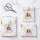 This wrapping paper features a colourful sprinkle design over a black background with 5 photo bubbles. Easily customise the name and add 5 uniques photos of the guest of honour. A colourful, fun, unique wrapping paper — perfect for a tween girls birthday party!