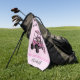 This customisable ladies golf towel features a golf cart with pink and green argyle details, printed glitter, plus a customisable name to personalise. It's a stylish pink accessory that would be a good gift for any woman who plays golf.