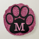 Fun Pink Paw Print with Monogram in Cheetah Round Cushion