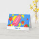 A thank you with a summery theme. Designed with a pink popsicle and some red strawberries and yellow paint splashes. Blue background. Message you can personalise inside the card.