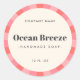 Round product labels with your product name or scent on a light cream or ivory background with a retro pink sunburst border around it. All fonts and colours are customisable. Add your logo, move and resize elements with the design tool.