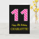 Fun Pink Striped "11"; Happy 11th Birthday; Name Card
