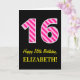 Fun Pink Striped "16"; Happy 16th Birthday; Name Card