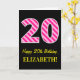 Fun Pink Striped "20"; Happy 20th Birthday; Name Card