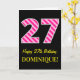 Fun Pink Striped "27"; Happy 27th Birthday Name Card