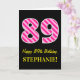 Fun Pink Striped "89"; Happy 89th Birthday; Name Card