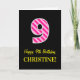 Fun Pink Striped "9"; Happy 9th Birthday; Name Card