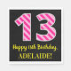 Fun Pink Stripes "13"; Happy 13th Birthday; Name Napkin