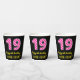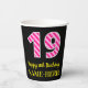 Fun Pink Stripes “19”: Happy 19th Birthday + Name Paper Cups