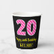 Fun Pink Stripes “20”: Happy 20th Birthday + Name Paper Cups