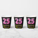 Fun Pink Stripes “25”: Happy 25th Birthday + Name Paper Cups