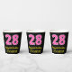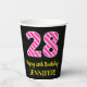 Fun Pink Stripes “28”: Happy 28th Birthday + Name Paper Cups