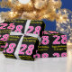 This fun birthday-themed wrapping paper design features a large number "28" with a dark pink and light pink stripes pattern, along with the message "Happy 28th Birthday,", and a custom name. The background is coloured black. Wrapping paper like this might be a fun way of wrapping a birthday present or gift being given to somebody who is celebrating their twenty eighth birthday. [~Z0000376]