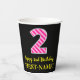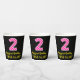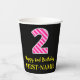 Fun Pink Stripes “2”: Happy 2nd Birthday + Name Paper Cups
