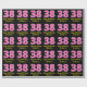 This fun birthday-themed wrapping paper design features a large number "38", with a light pink and dark pink stripes pattern. It also features the message "Happy 38th Birthday,", and a customisable name. The background is coloured black. Birthday themed wrapping paper like this might be a fun way to wrap a gift or present being given to somebody who is celebrating their 38th birthday. [~Z0000376]