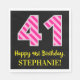 Fun Pink Stripes "41"; Happy 41st Birthday; Name Napkin