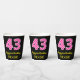 Fun Pink Stripes “43”: Happy 43rd Birthday + Name Paper Cups