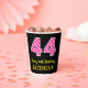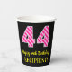 Fun Pink Stripes “44”: Happy 44th Birthday + Name Paper Cups