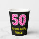 Fun Pink Stripes “50”: Happy 50th Birthday + Name Paper Cups