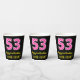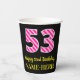 Fun Pink Stripes “53”: Happy 53rd Birthday + Name Paper Cups