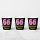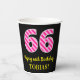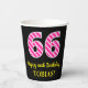 Fun Pink Stripes “66”: Happy 66th Birthday + Name Paper Cups