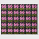 This fun birthday-themed wrapping paper design features a large number "66", with a dark pink and light pink stripes pattern. It also features the message "Happy 66th Birthday,", and a personalised name. The background is coloured black. Birthday themed wrapping paper like this might be a fun way to wrap a gift or present being given to celebrate somebody’s 66th birthday. [~Z0000376]