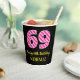 Fun Pink Stripes “69”: Happy 69th Birthday + Name Paper Cups