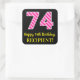 Fun Pink Stripes “74”: Happy 74th Birthday + Name Square Sticker
