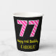 Fun Pink Stripes “77”: Happy 77th Birthday + Name Paper Cups