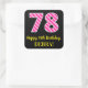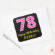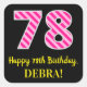 Fun Pink Stripes “78”: Happy 78th Birthday + Name Square Sticker