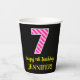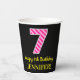 Fun Pink Stripes “7”: Happy 7th Birthday + Name Paper Cups