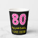 Fun Pink Stripes “80”: Happy 80th Birthday + Name Paper Cups