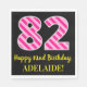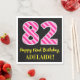 Fun Pink Stripes "82"; Happy 82nd Birthday; Name Napkin