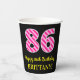 Fun Pink Stripes “86”: Happy 86th Birthday + Name Paper Cups