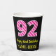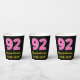 Fun Pink Stripes “92”: Happy 92nd Birthday + Name Paper Cups