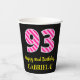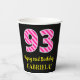 Fun Pink Stripes “93”: Happy 93rd Birthday + Name Paper Cups