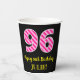Fun Pink Stripes “96”: Happy 96th Birthday + Name Paper Cups