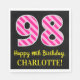 Fun Pink Stripes "98"; Happy 98th Birthday; Name Napkin