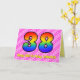 This upbeat and festive 38th birthday greeting card design has a front featuring a large number "38" having a colorful pattern inspired by the look of a rainbow spectrum, on a fun light pink and dark pink heart shapes striped pattern background. The front also features the message "Happy 38th Birthday,", followed by a personalized recipient name. The inside features a custom birthday greeting message, or could perhaps be cleared and left blank if a message is to be written by hand instead. A customizable birthday card like this might be a fun and happy way of sending a message in celebration of somebody’s thirty-eighth birthday. [~Z0000418]