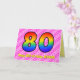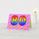 Fun Pink Stripes, Hearts, Rainbow # 80th Birthday Card