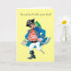 A fun 'Good Luck with your Test' card for a child, with a jolly pirate and his parrot on a yellow background, from a watercolour painting by Judy Adamson. You can edit the inside text if you wish.