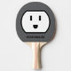 Fun power socket ping pong paddle for table tennis. Personalised sports game gift idea for men women and kids. Cute design with smiling electrical plug jack. Custom background colour. Fun for player and coach.
