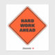 A classic orange diamond caution road sign warns of hard work ahead in a thick black sans serif font. A pun play on words of a classic sign, road work ahead, perfect for school books, journals, vision board.