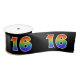 Fun, Rainbow Pattern "16" Event Number (Black) Satin Ribbon