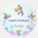 Fun rainbow shark birthday balloon party Family Classic Round Sticker