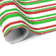 This wrapping paper design features a Christmas and holidays style pattern of stripes having colours like red, white, and green. Wrapping paper like this might be used when preparing gifts being given to celebrate a birthday, a wedding, an anniversary, or some other event.