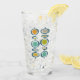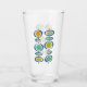 This fabulous mid century modern glass tumbler features two sets of abstract hanging circles in the colours of avocado green, turquoise blue, orange, tan, gold, and blue. This will make a fun addition to your kitchen!