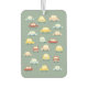 Fun retro car pattern on a sage green background. Original art by Nic Squirrell.