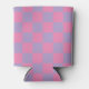 Fun Retro Checkered Pattern Pink Purple Groovy Can Cooler